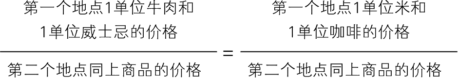 的价格,也就是假定两种完全适用于这两个地点的复合商品,它们之间的第三个复合中间值大致适用于这两个地点。根据上述表示符号,这相当于用