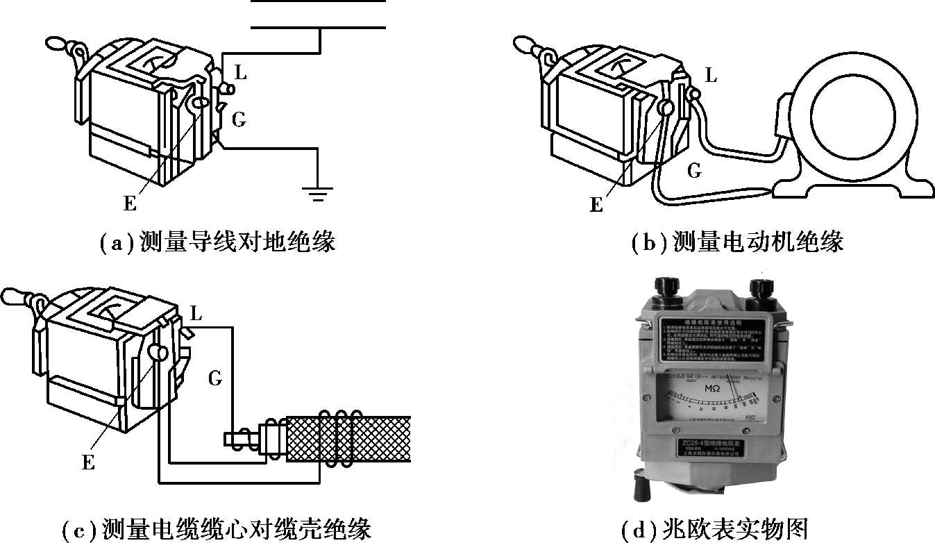 ③测量时必须正确接线。兆欧表共有 3 个接线端(L、E、G)。测量回路对地电阻时,L端与回路的裸露导体连接,E端连接接地线或金属外壳;测量回路的绝缘电阻时,回路的首端与尾端分别与L、E连接;测量电缆的绝缘电阻时,为防止电缆表面泄漏电流对测量精度产生影响,应将电缆的屏蔽层接至G端。