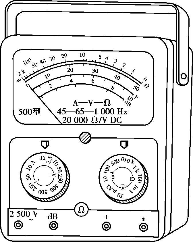 指针式万用表(图 1.15)又被叫作多用表、三用表、复用表,是一种多功能、多量程的仪器,一般指针式万用表可测量直流电流、直流电压、交流电压、电阻等。