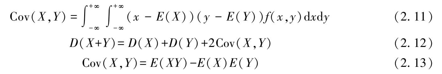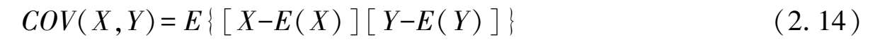 把 E {[ X - E ( X )][ Y - E ( Y )]}定义为随机变量 X 与 Y 的协方差,记为Cov( X , Y ),即Cov = E {[ X - E ( X )][ Y - E ( Y )]}。