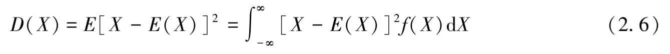 从方差定义可以看出,它是随机变量 Y = [ X - E ( X )] 2 的数学期望。对于确定的分布, E ( X )是确定的,因而,方差是反映 X 与 E ( X )偏离程度的变量 Y 的期望值,是描述随机变量 X 分散性的特征参数。
