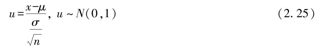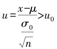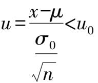 时接受假设,反之否定原假设,此时认为总体均值
