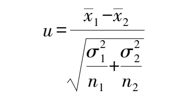 u 检验可以来检验两个遵守正态分布,标准偏差不相等的总体均值是否有显著性差异,即检验假设 H : μ 1 = μ 2 。