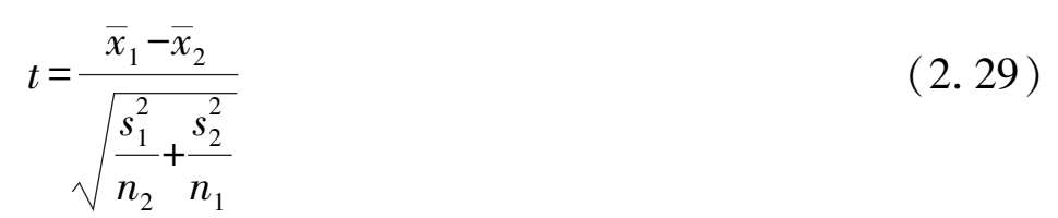 如果 n 1 和 n 2 都比较大,则可以用下式近似计算统计量 t :