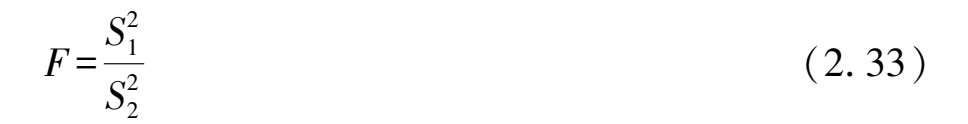 F 服从第一自由度为 n -1,第二自由度为 m -1 的 F 分布,记作 F ~ F ( n -1, m -1)。