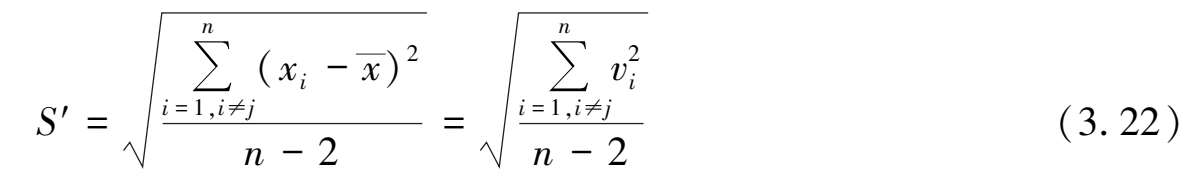对于某一等精度重复测量 x 1 , x 2 ,…, x n ,若认为其中的某数据 x j 为可疑数据,将其剔除后的平均值为(计算时不包括 x j ):