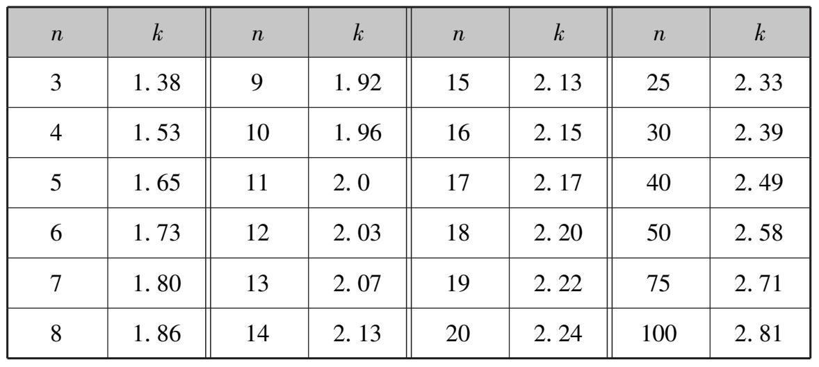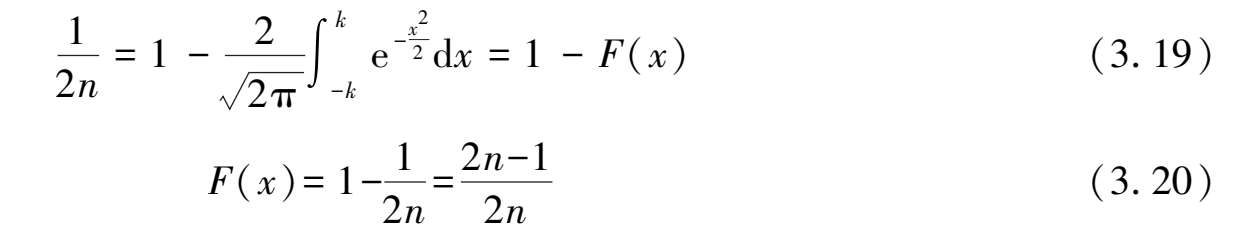 表3.6 肖维勒方法中的系数k与n的关系对照表