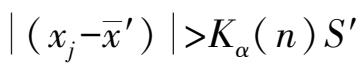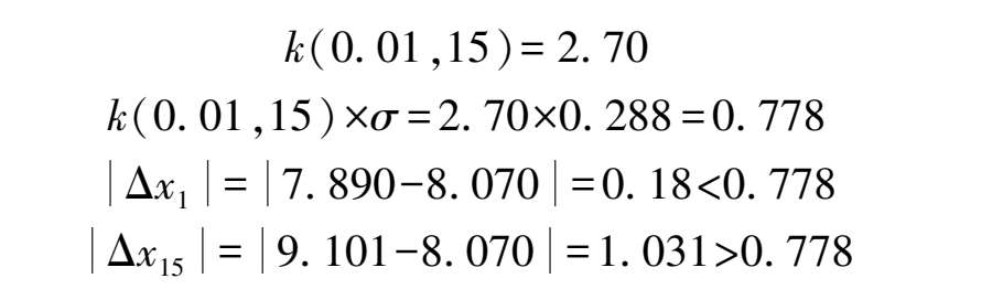 则认为测量值 x j 含有粗大误差,剔除它是正确的。否则,就认为 x 不含有粗大误差,应予以保留。