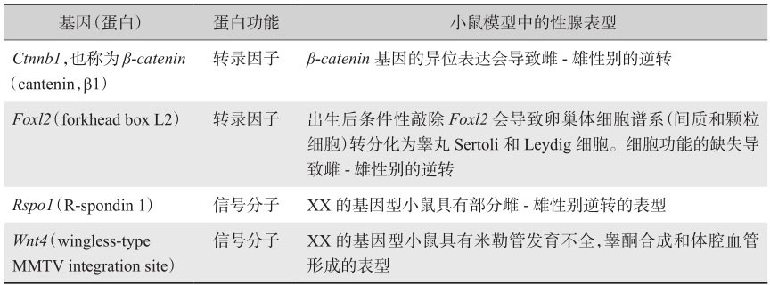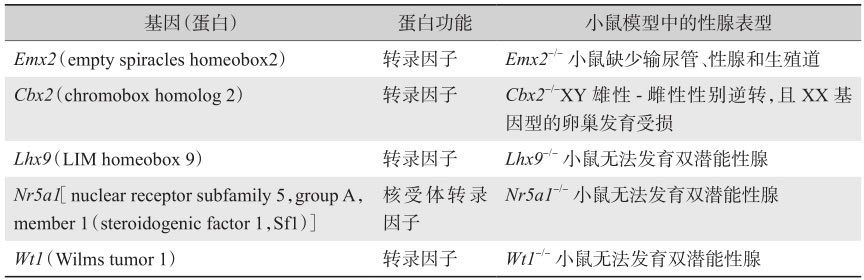表2-2 小鼠中决定性腺发育命运的关键分子