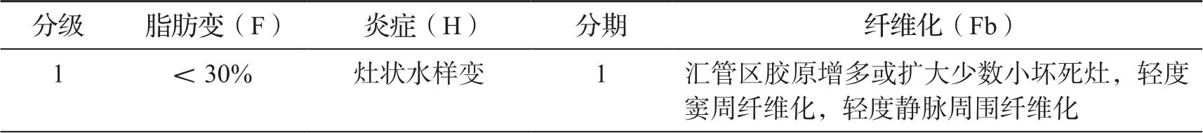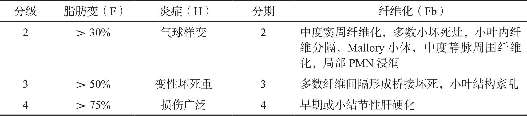 表4-3-1 酒精性肝病病理组织分级分期标准