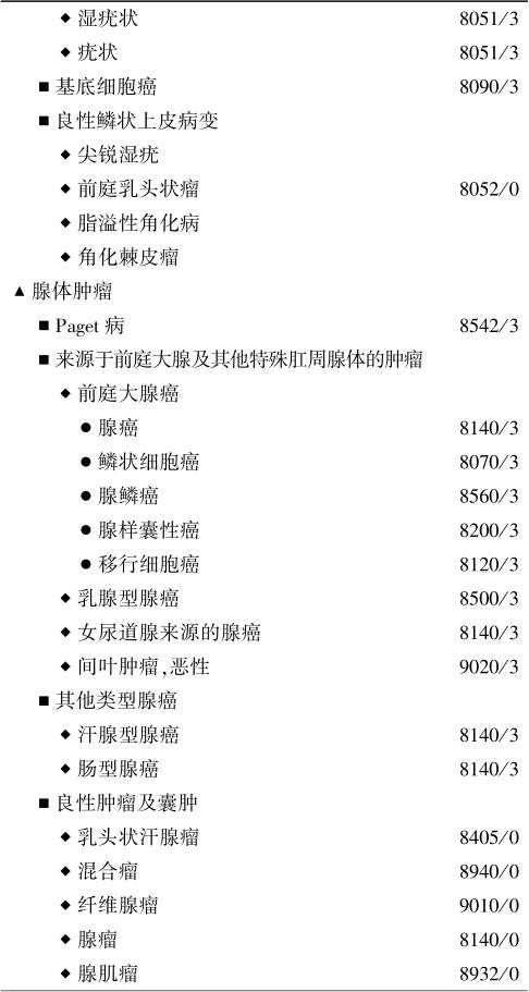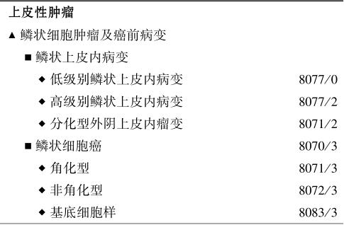 (2)病理组织学类型:鳞状细胞癌是外阴癌最常见的类型,其次为恶性黑色素瘤、基底细胞癌、Paget病、疣状癌、腺癌、前庭大腺癌、肉瘤等。
