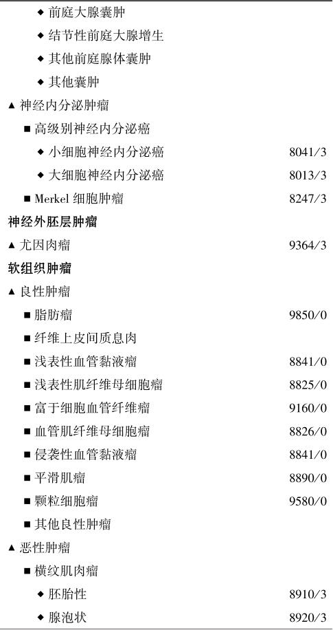 (3)组织病理学分级(G):G x ——分级无法评估;G 1 ——高分化;G 2 ——中分化;G 3 ——低分化。