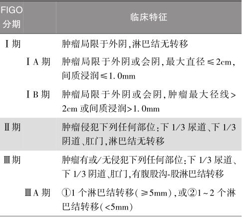 采用FIGO于2009年5月公布的外阴癌分期(表1-2)。