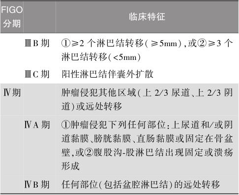 (3)Ⅲ期最基本的诊断标准是腹股沟淋巴结阳性,而不论肿瘤大小和有无邻近会阴组织受累。根据淋巴结转移的数量和转移灶的大小,以及有无囊外扩散,Ⅲ期又分A、B、C三个亚分期。