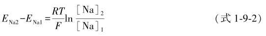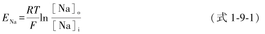 Hodgkin和Huxley结合离子替换实验证明,以氯化胆碱代替海水中的NaCl时,电压钳制期间的早期内向电流消失,后期外向电流不受影响。他们结合反向电流测定更加证明,早期内向电流的载流离子是Na + :当电压钳制在 E Na 水平时(反向电位,reversal potential),不出现Na + 的净电流;如高于 E Na ,Na + 由内流变为外流,从膜内流向膜外(反向电流,reversal current)。证明载流离子最有说服力的方法是在电压钳制的基础上,将离子替换法与反向电流测定法相结合。在保持[Na] i 不变的条件下,改变[Na] o ,使其从[Na] 1 变到[Na] 2 时,Na + 平衡电位在理论上的变化值为: