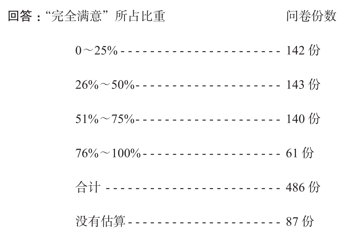 问题2: 在100家随机选择的上市公司中,你认为公司的管理让人完全满意的能占到多大的比例?