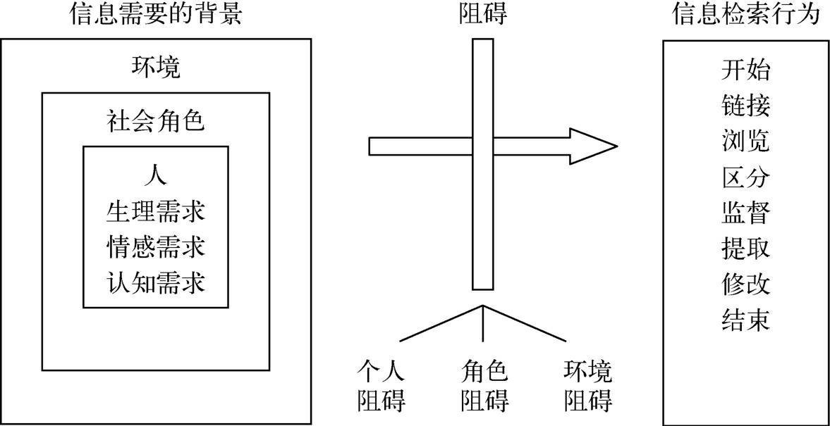 最后,威尔逊1996年信息行为模型最大的优势是:它提供了信息行为影响机制的探索空间。它是开放的、跨界的、弹性的,在普遍信息行为的流程基础上,根据不同学科和具体信息行为类别,可以在干扰变量的部分进行具有针对性的补充、替换和更新。这些干扰变量的引入,不仅是信息行为流程中的必要环节,同时也意味着这个模型已经深化解释并影响了信息行为机制的部分,这是被其他两个模型忽略的,但都是本书研究要着力研究阐释的部分。