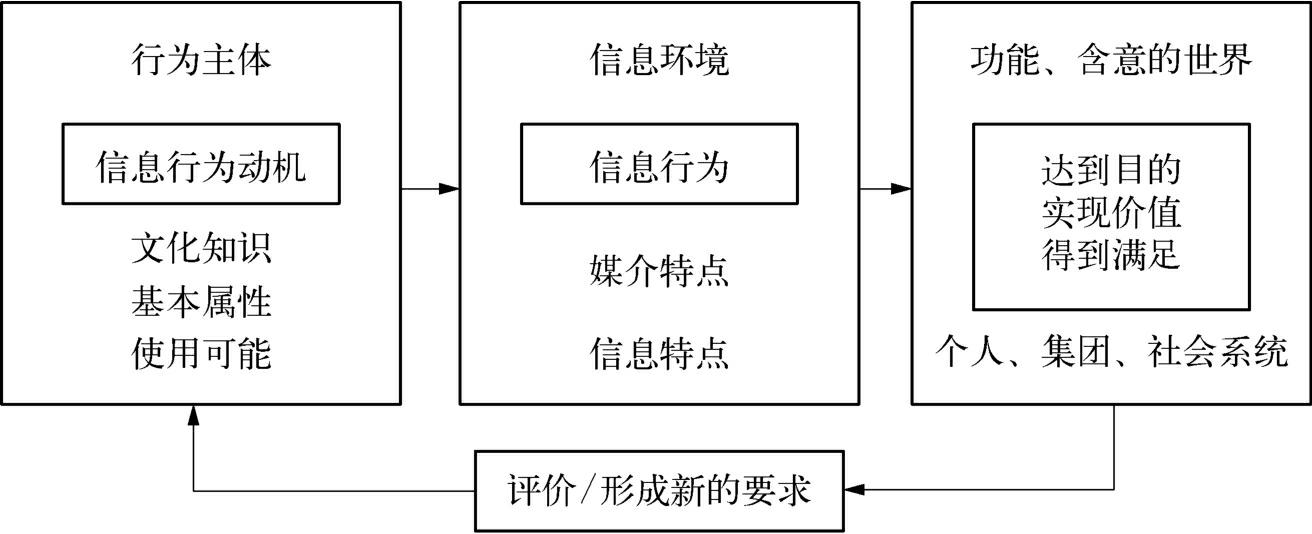 1)信息行为的主体产生信息行为动机,在这个过程中,信息行为主体的文化知识、基本属性以及使用的可能都会对行为主体产生不同的动机产生影响。