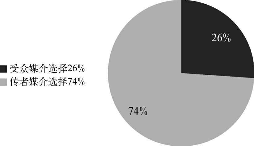 截至2015年1月,以“媒介选择”为关键词作题名检索,经筛选后获得46篇核心文献,研究视角分为两类,传者媒介选择类有34篇,占比74%,受众媒介选择类有12篇,占比26%(见图2-4)。