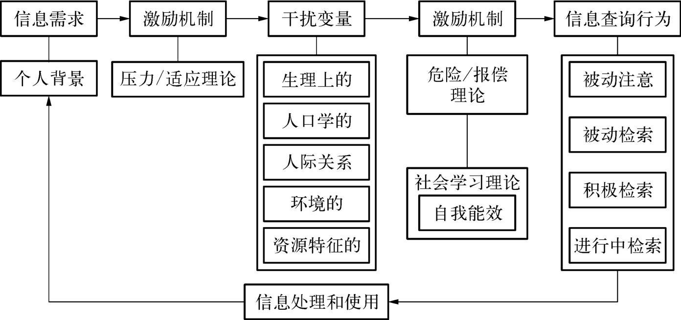 威尔逊信息行为理论是在信息探求行为研究基础上发展起来的信息行为理论模型,经历了20多年的发展,已经逐步从图书馆与信息科学的专业学科领域跳脱出来,综合了社会学、心理学、行为学、管理学等多学科领域的研究成果,是目前解释信息行为机制最为有效的信息行为模型之一。