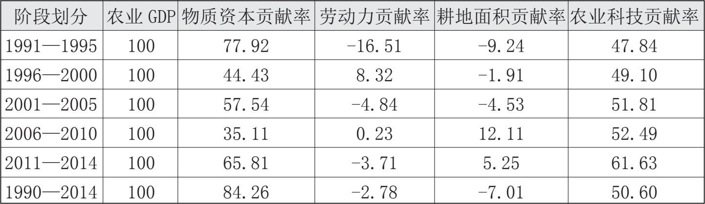 表3-4 1990—2014年广东农业各指标贡献率
