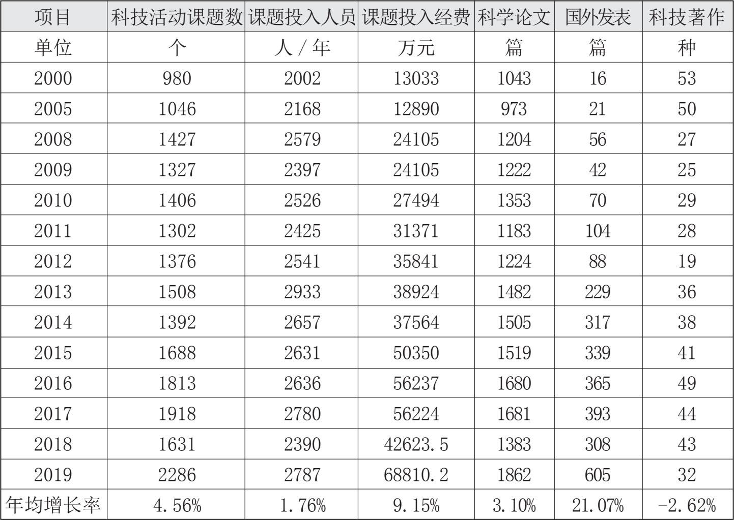 表3-5 2000—2019年广东省农业科研课题投入与产出情况