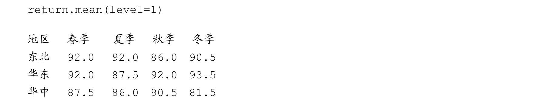 level参数不仅可以使用列名称,还可以使用列索引号,例如统计不同地区的平均退单量,示例代码和输出如下: