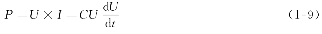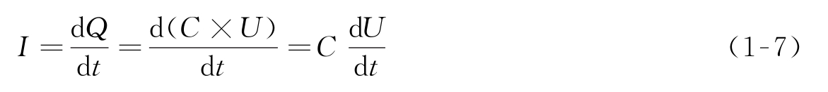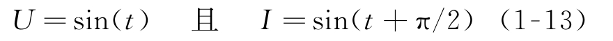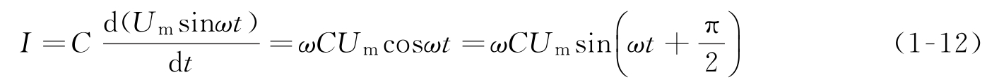 假如在电容两端通入正弦交流电压,即 U = U m sin ωt ,由式(1-7)得到在 t 时刻通过电容电流 I