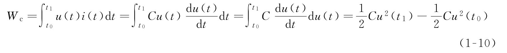 如初始时刻 t 0 电容的能量为0,那么在 t 时刻电容吸收能量可以写为