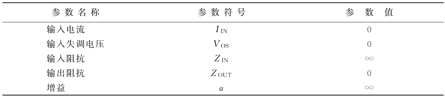 表2-1列出了理想运算放大器基本假设对应的一些参数值。