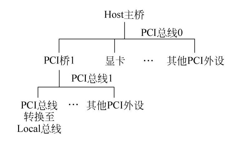 然后,系统继续扫描PCI总线0,检查总线0是否包含除PCI桥1以外其他的PCI桥设备。本例中,PCI总线0仅包含1个PCI桥设备,则完成扫描。
