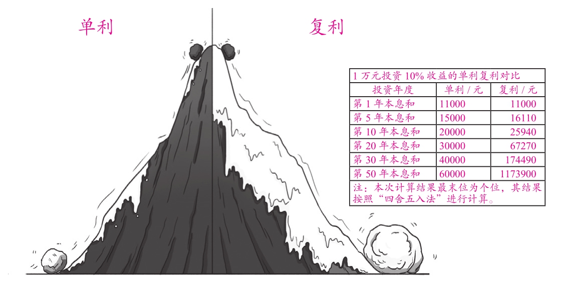 威廉·配第导师补充道:“复利最大的魅力就在于,它不仅是本金产生利息,利息也能产生利息,就像滚雪球一样,越滚越大。”