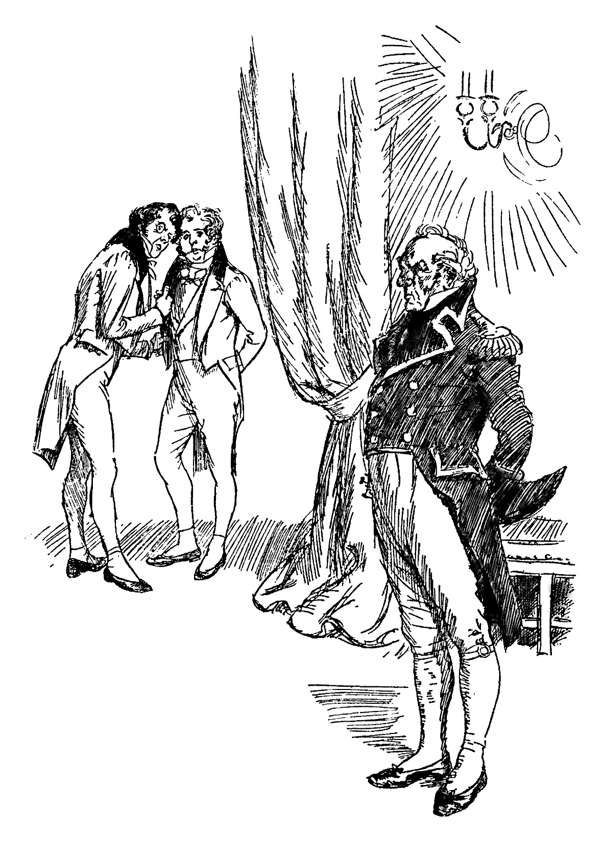 沃尔特爵士只是点了点头。但没过一会儿,他站起身来,一边在房间里踱步,一边用讥讽的口气说道: