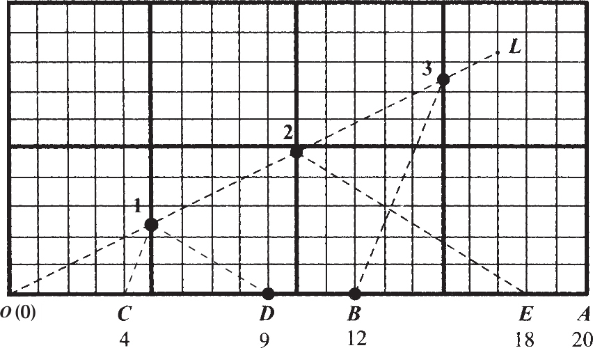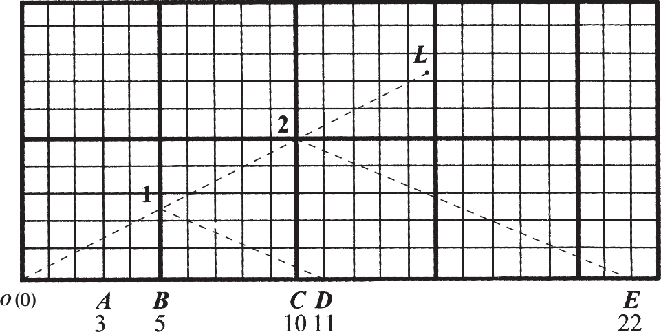 (6)连1 D ,作2 E 平行于1 D ,得 E 点,它指示的是18。