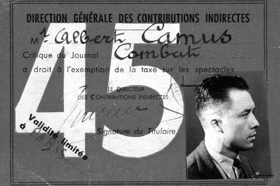 二战时,加缪申请参军,但是因患肺结核被拒。一度加入法国共产党,后退党。1940 年,加缪到巴黎从事《巴黎晚报》的编辑工作,同年德军入侵法国,遂携新婚的第二任妻子——钢琴家兼数学家弗朗西娜·弗尔返回阿尔及尔教书。