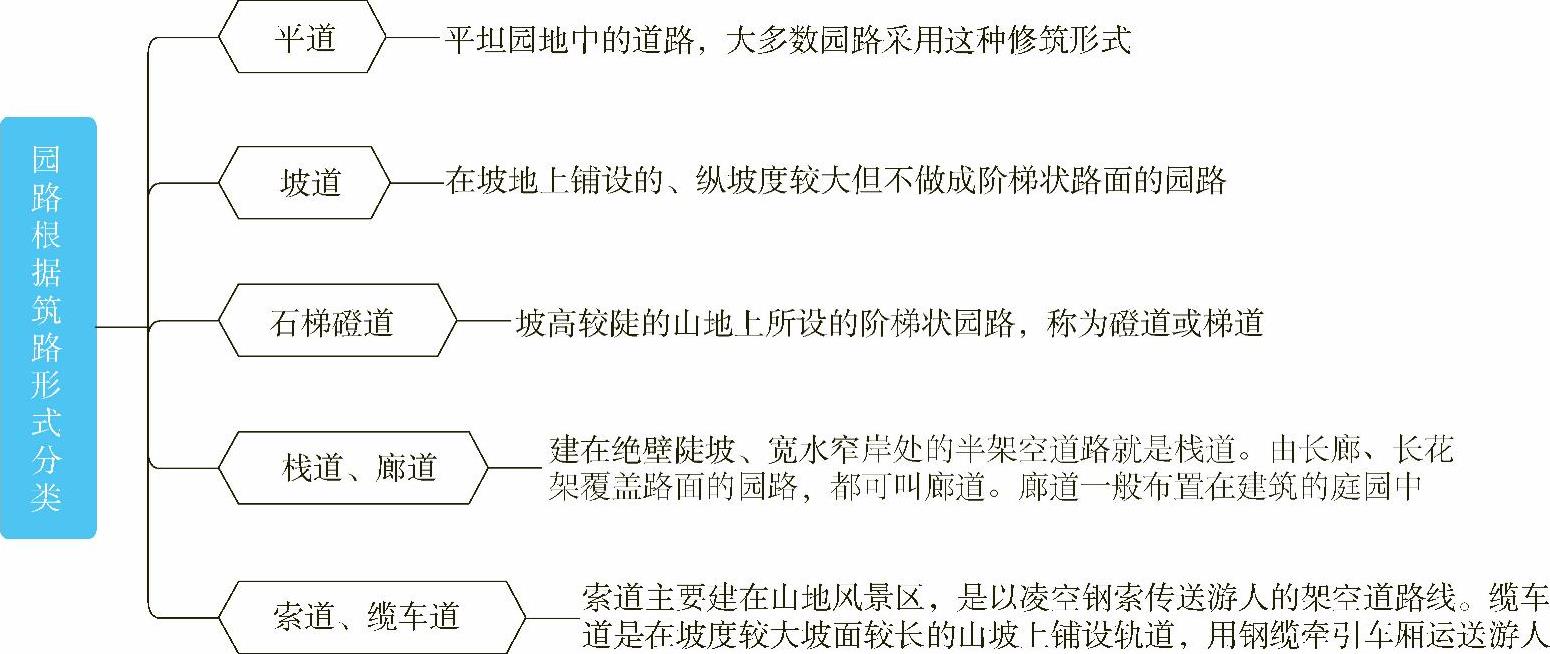 图1-25 园路根据筑路形式分类