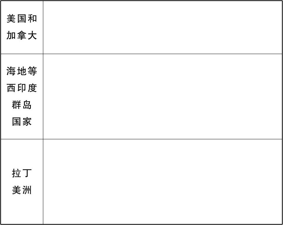 (1)美洲族群的变化:印第安人数量的锐减,欧洲人和_____数量的激增,迅速改变了美洲的人口结构,出现了新的族群。白人、黑人、印第安人以及他们相互之间的混血后代,逐渐成为美洲大陆的主要居民。