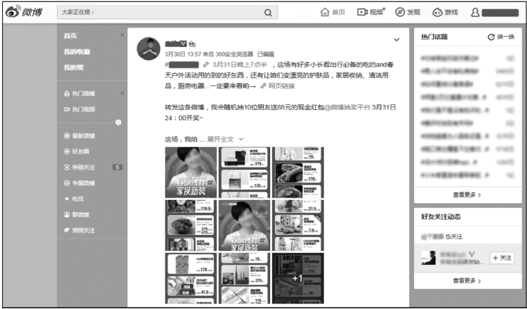 (1)社交应用类新媒体:QQ、微信、微博等,图1-1所示为微博界面。