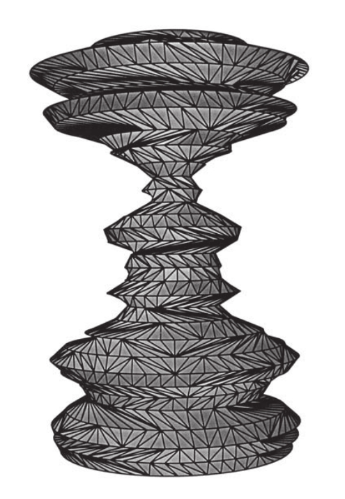 约翰·惠勒曾说过,在普朗克尺度上,时空不再是平滑的,而是类似于泡沫,也就是他所说的时空泡沫。在向惠勒致敬时,数学家约翰·贝兹(John Baez)建议将演化中的自旋网络称为自旋泡沫(spin foam)。自20世纪90年代中期以来,有关自旋泡沫的研究如雨后春笋般涌现。目前有几个不同的版本正在研究中,分别是迈克·赖森伯格(Mike Reisenberger)、路易斯·克兰和约翰·巴雷特(John Barrett),以及福蒂尼·马可波罗-卡拉马拉这几位科学家的研究成果。卡洛·罗韦利、约翰·贝兹、雷娜塔·罗尔和许多其他对圈量子引力做出贡献的人现在都在从事自旋泡沫的研究。所以这是目前非常活跃的一个研究领域。图10-10展示了一个以自旋泡沫理论为基础的,只有一个空间和一个时间维度的世界的计算机模拟。这是简·安布杨(Jan Ambjorn)、科斯塔斯·阿纳格诺斯托普洛斯(Kostas Anagnostopoulos)和雷娜塔·罗尔的作品。这些宇宙非常小,每条边对应一个普朗克长度。但它们并不总是平滑演化,相反,宇宙的大小不时地突然跳跃,这就是几何的量子涨落。多年后,我们才得到一个真正的时空几何量子理论。