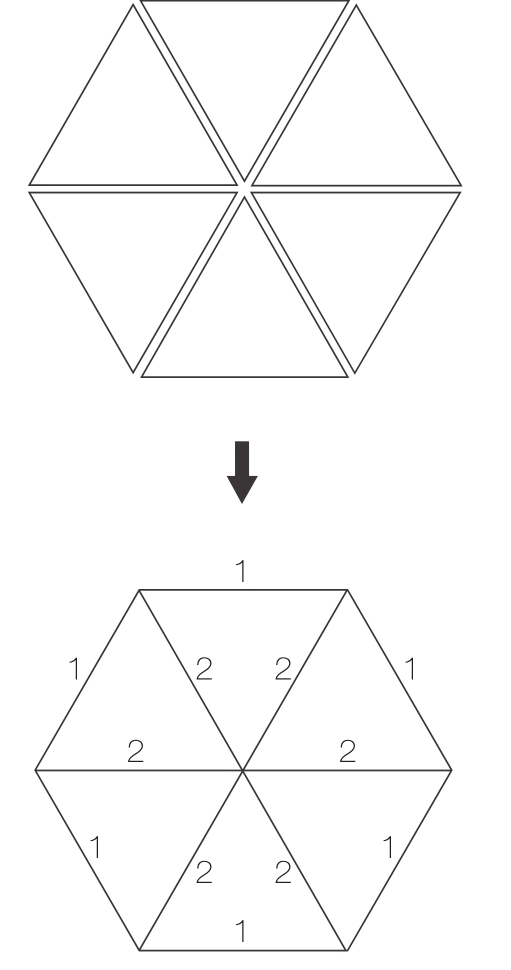 圈量子引力理论带来的最美丽的结果之一是发现圈的态可以出现在非常美丽的图景中,即自旋网络。自旋网络实际上是30年前由罗杰·彭罗斯(Roger Penrose)发明的。彭罗斯也受到空间必须是纯粹关系的观点的启发。但他能够直接进入问题的核心,而不是像我们一样试图从一些现有的理论中推导出关系空间图。他更有勇气,寻求可能是量子几何理论基础的最简单的关系结构。他想出的便是自旋网络。自旋网络只是一个图(如图10-2、10-3、10-4和10-5所示),其边缘由整数标记。这些整数来自量子理论中粒子的角动量允许的值,它等于一个整数乘以普朗克常数的一半。