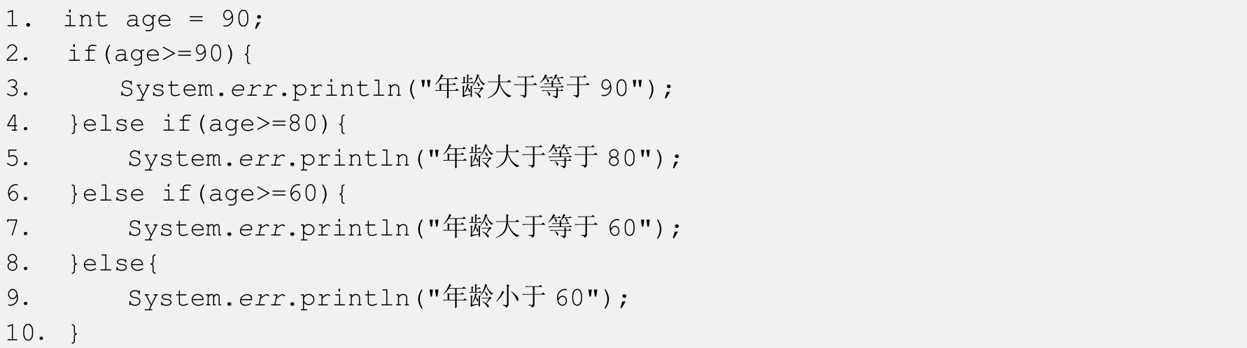 在if分支中,不管有多少个分支语句,只要进入某一个分支,其他分支将不再进行判断。所以,在使用if分支语句时应该将更加严格的条件声明到前面。例如,在上面的代码中就将90这个判断声明到了前面。
