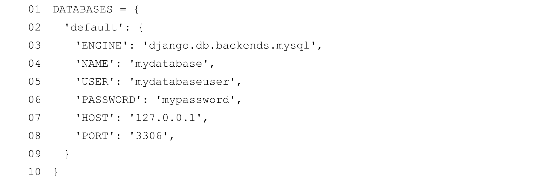 ● 第08行代码中,PORT字段定义的是数据库服务器端口,MySQL数据库的默认端口为3306。