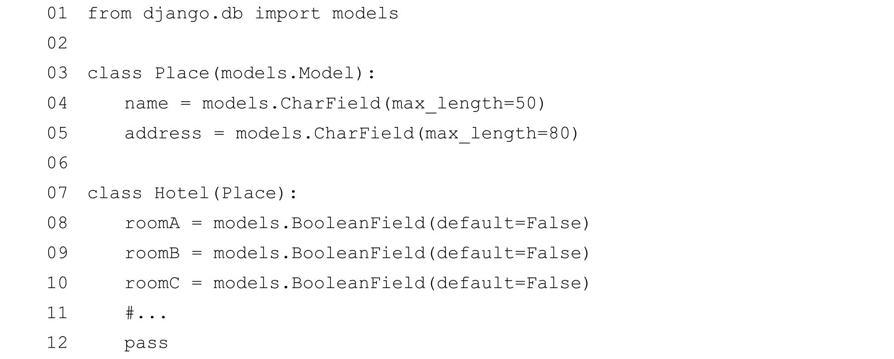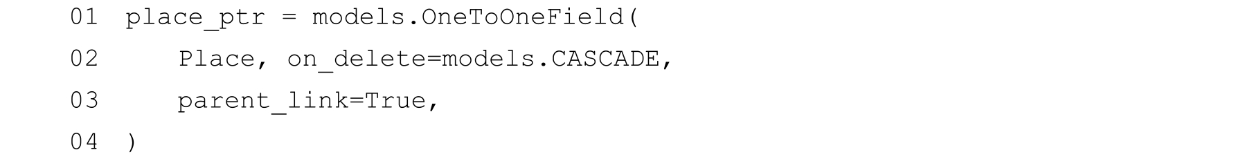 在Hotel模型中自动创建的、连接至Place模型的OneToOneField看起来类似下面的代码: