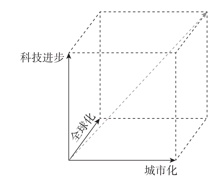 “ 推动人类社会发展的三个核心驱动力分别是城市化、全球化和科技进步。 ”