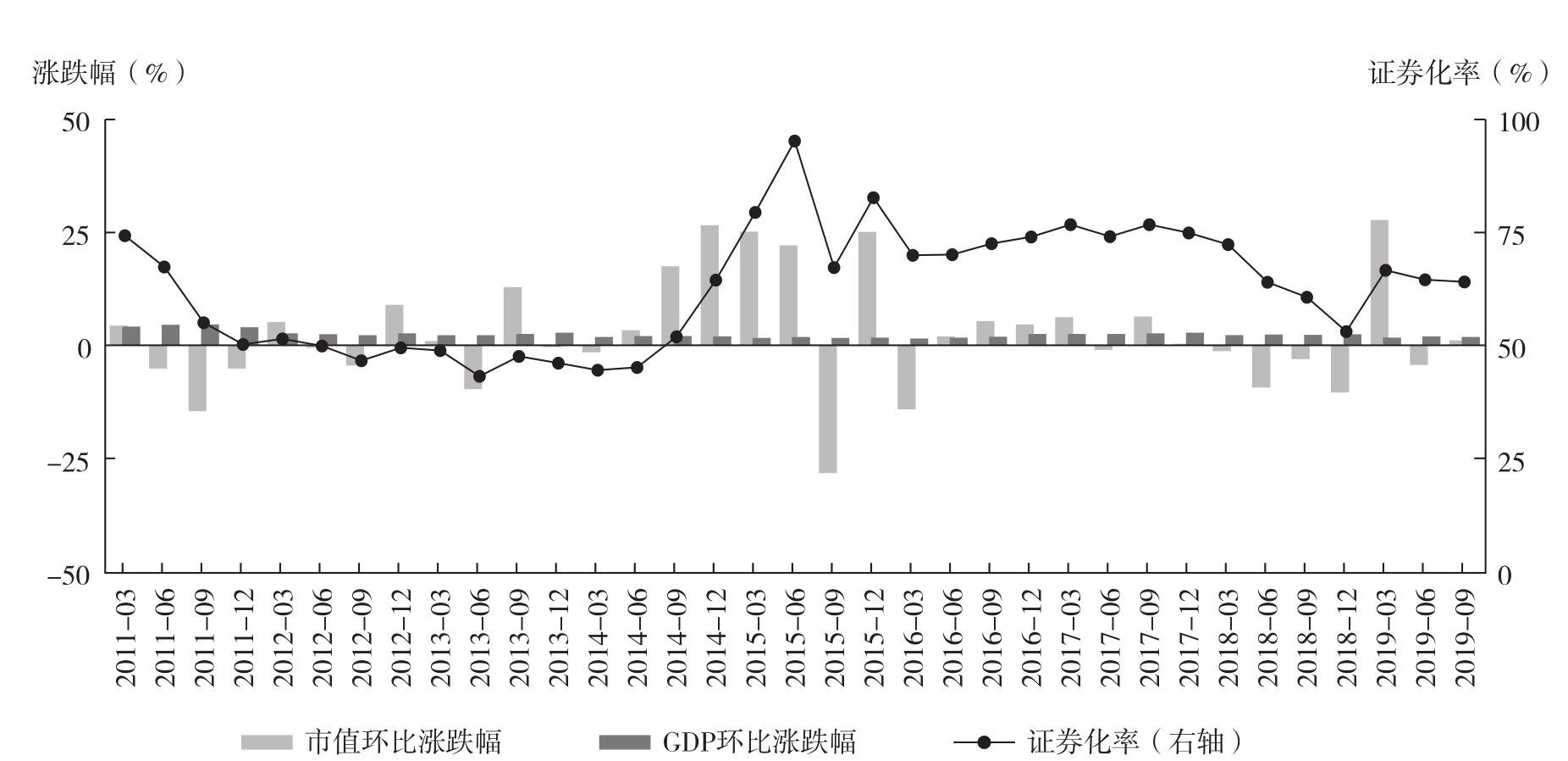 图1-2 2011年3月至2019年9月A股证券化率的变化