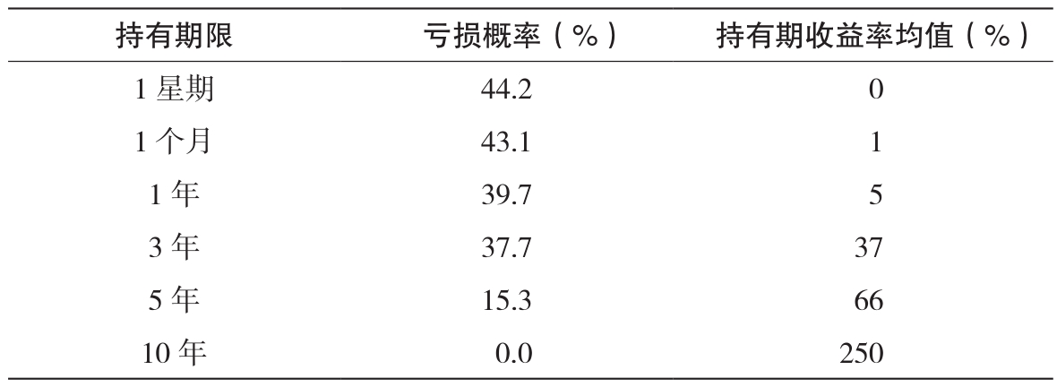 表1-1 2005—2015年万得全A指数不同持有期限的资产组合表现
