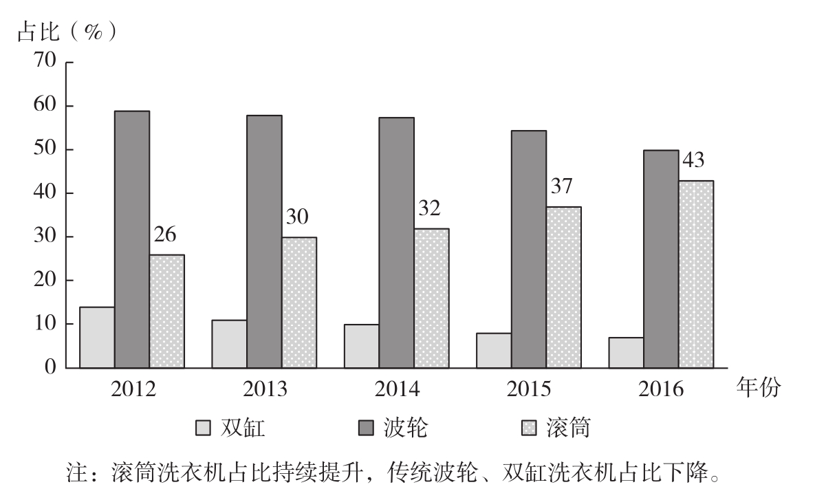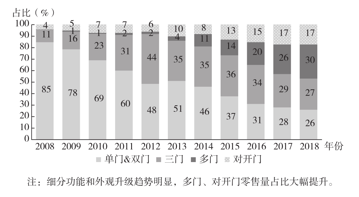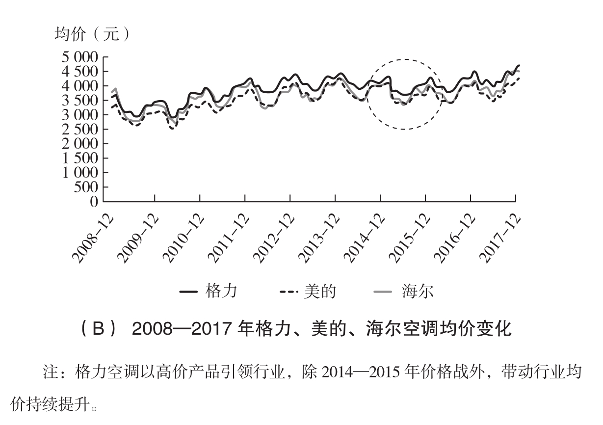 我为了看消费数据,专门把几家家电企业这几年的报表拆分来看,发现升级非常明显。近10年家电各子领域产品均价都在大幅提升(见图3-2),空调的产品结构发生了很大变化(见图3-3),冰箱和洗衣机的产品结构都在改善(见图3-4、图3-5)。格力是国内领跑的空调品牌(见图3-6)。海尔非常特别,它的品牌力是格力、海尔、美的三家里面最强的,所以它最近一两年的增幅是最好的,海尔旗下超高端品牌卡萨帝持续快速增长(见图3-7),显著高于其他品牌。美的提升的空间较大,但是企业要做好品牌其实难度非常大。大家可以在图3-8、图3-9中看到冰箱、洗衣机的价格,从中可以看出哪家公司的品牌更强。