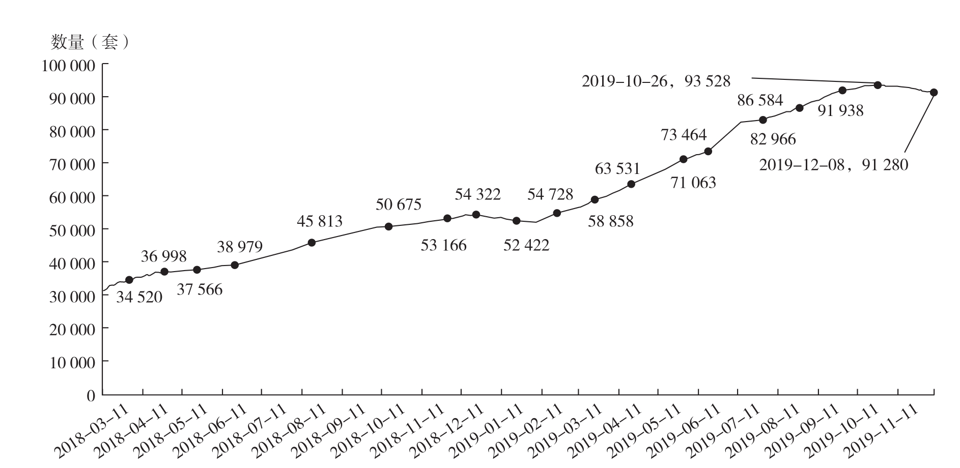 图3-10 2018年3月至2019年11月北京二手房源数量变化