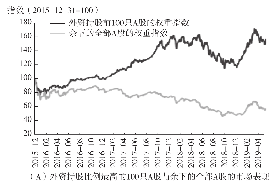 所以我还是回到2019年初时说的, 推动人类社会发展的三个核心驱动力——全球化、城市化、科技进步,中国在这三个方面都有非常巨大的潜力,同时也有强大的执行力。 A股市场的状况现在不用多说,证券化率仍然处于低位(见图1-2),估值也还合理,关键是北向资金继续加大对A股的配置。关于这个配置情况我来解释一下原因。20世纪90年代的时候,我在学校曾经略微研究过一个小问题——资本外逃。1992年的时候,第一波回来的合资企业有很多假外资,我在工作中就经常碰上90年代初逃出去的钱再回来的假外资。