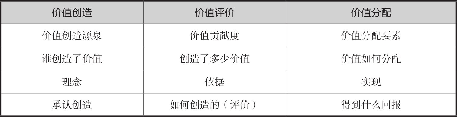 一家企业的经营机制,说到底是一种利益驱动机制。企业的价值分配系统必须合理,价值分配系统合理的充分条件则是价值评价系统必须科学合理。价值创造管理链释义如表1-2所示。